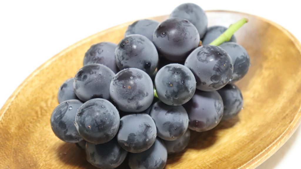 巨峰は、田主丸をはじめ耳納連山の麓で果樹栽培が盛んな久留米を代表するぶどうです。大粒で果汁が豊か、香り高い甘みとほどよい酸味が調和するのが特長。旬は夏から初秋にかけてで、冷やしてそのまま味わうほか、デザートやジュースにも向きます。果皮が厚く、手で皮をむいて口に運ぶ食べ方が一般的。季節には観光農園でのぶどう狩りも楽しめ、自然の恵みを身近に感じられます。家族で囲む食卓に季節感を添える、久留米らしい果物です。