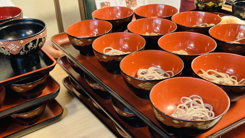 わんこそばは、岩手県盛岡市の郷土料理として知られる特産品です。小さなお椀に一口分ずつ盛られたそばを、次々と提供されるスタイルが特徴で、食べた数を競う文化もあります。そば自体はのどごしが良く、さっぱりとした味わいで、薬味やつゆを変えながら飽きずに楽しめます。わんこそばは単なる食事ではなく、盛岡の風土や人との交流を感じられる体験としても親しまれており、地域の食文化を代表する存在です。