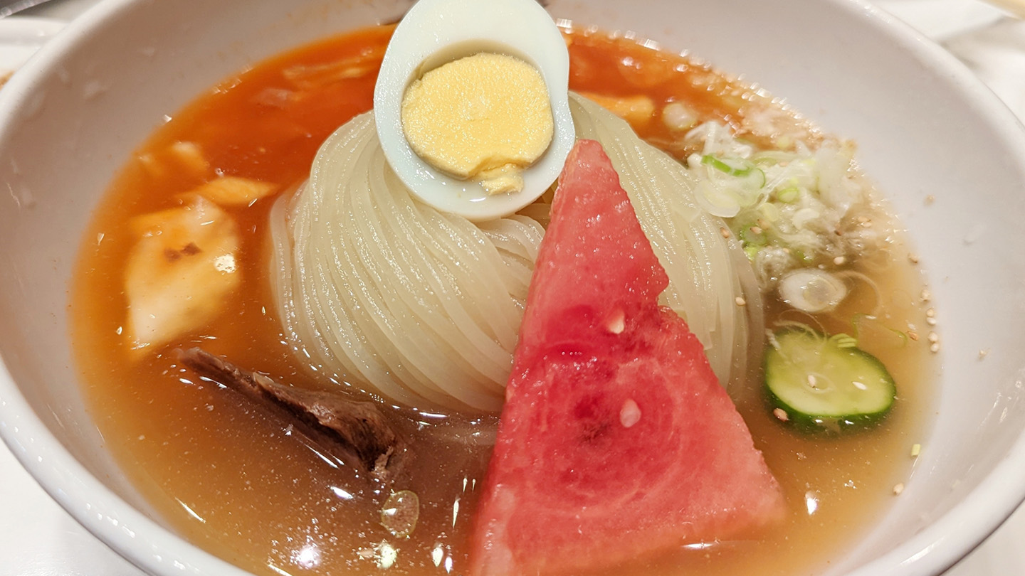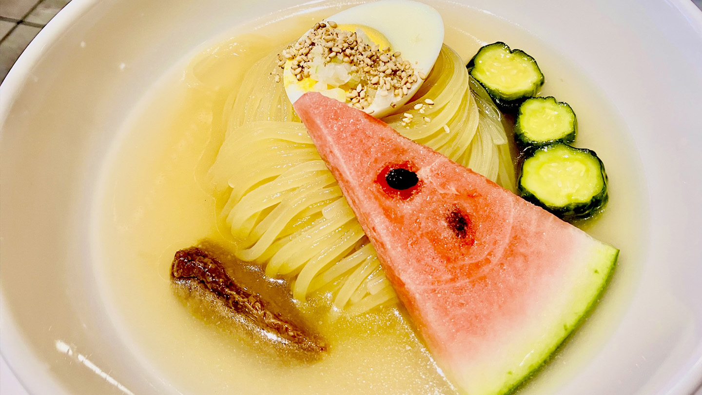 盛岡冷麺は、岩手県盛岡市を代表するグルメで、独特のコシと透明感のある麺、牛骨ベースのあっさりとしたスープが特徴の盛岡の特産品です。辛みのあるキムチやゆで卵、果物をトッピングするのが定番で、冷たいスープと相まって、夏はもちろん一年を通して人気があります。市内には専門店も多く、各店が工夫を凝らした個性ある味を楽しめるのも魅力のひとつ。盛岡グルメとして地元の人々に長年親しまれており、盛岡観光に訪れた際にはぜひ味わいたい一品です。冷麺の他にも、わんこそばやじゃじゃ麺と並び「盛岡三大麺」としても知られています。